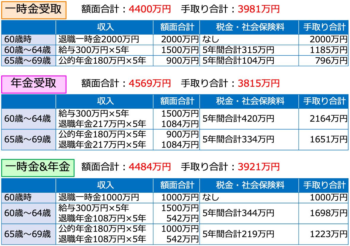 お住まいの地域により細かな数字は変わりますので、あくまで参考までですが、多少金額は違っても一時金受け取りが有利になるでしょう。