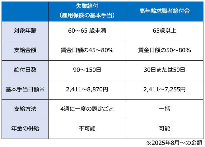 <失業給付と高年齢求職者給付金>