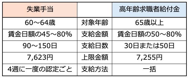 基本手当と高年齢求職者給付金は、65歳を境にして内容が大きく異なります。受給要件・支給金額・受給日数の違いは次のとおりです。