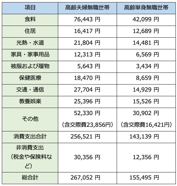 総務省の調べによれば以下の表のとおり、年金だけでは平均的な支出はまかなえない結果となっています。