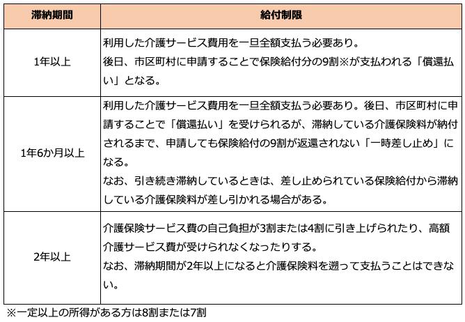 具体的には、介護保険料を滞納した期間に応じて、以下の給付制限が設けられています。