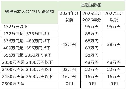 2025年の所得から、基礎控除が58万円に