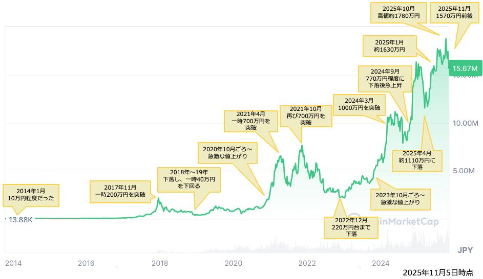 <ビットコインの値動き(2014年〜2025年11月5日)>