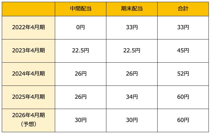 株主優待は500円分のQUOカード。1年以上・3年以上の長期保有でもらえる金額がアップしていきます。配当も順調に増加しています。