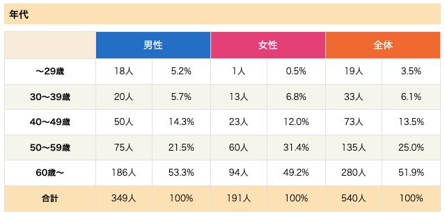 男女ともに多いのは60歳以上で、全体では半数を占めていることがわかります。