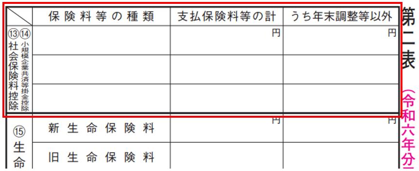 確定申告では、第一表「社会保険料控除」欄に年間支払額を記載し、第二表に支払内容の詳細を記載します。