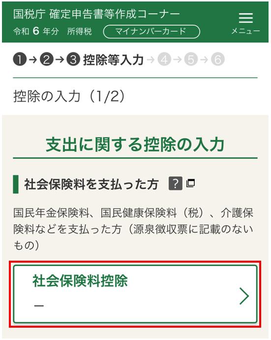 スマホやパソコンで確定申告を行うe-Taxの場合、「控除の入力」の画面に社会保険料控除の入力欄がありますので、選択して入力します。