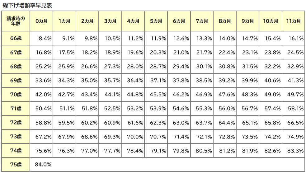 <繰り下げ増額早見表>