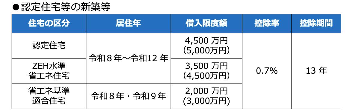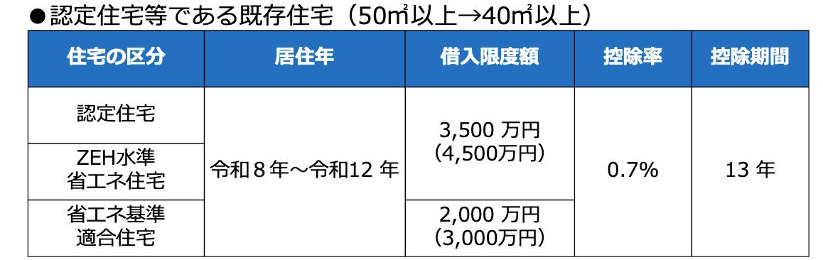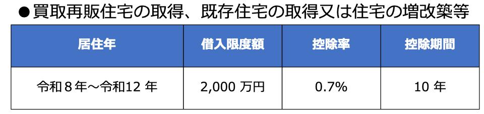住宅ローン減税5年延長、中古住宅の借入限度額拡充、床面積要件緩和【2030年末まで】