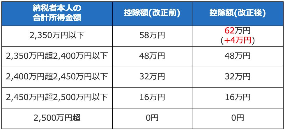 基礎控除や給与所得控除の見直しに合わせて、各種控除の対象者となる「合計所得金額要件」も増加します。具体的には、次のとおりです。