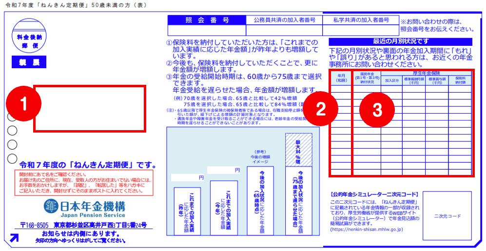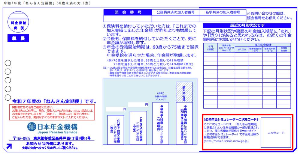 <ねんきん定期便(50歳未満・表面)>