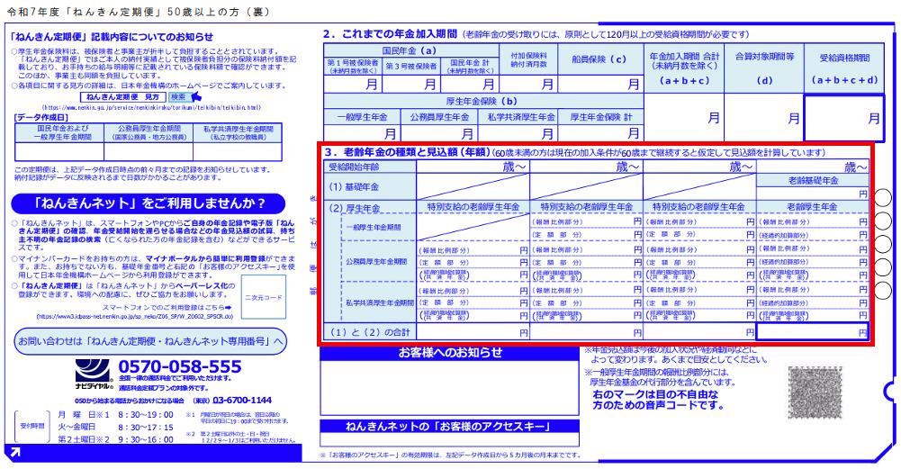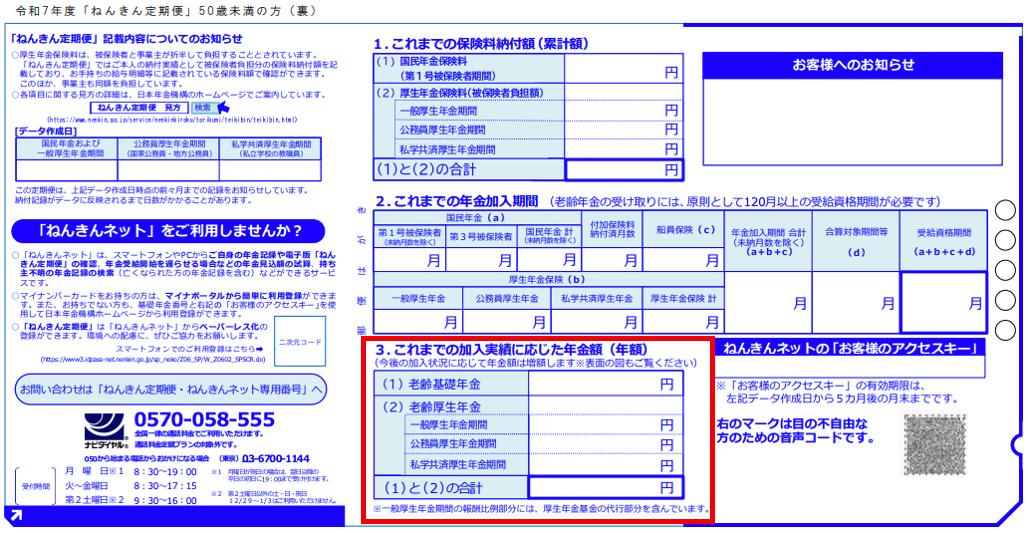 <ねんきん定期便(50歳以上・裏面)>