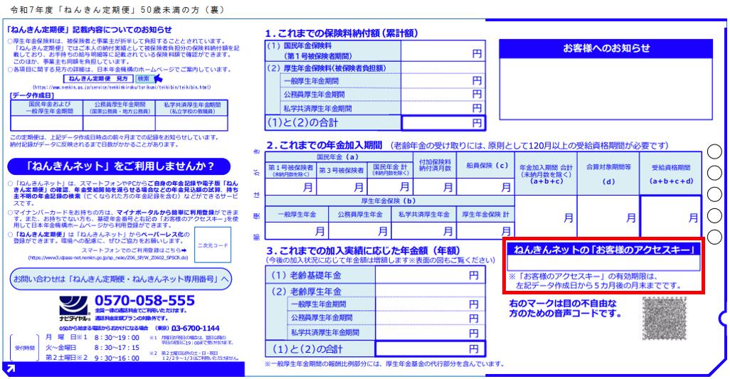 <ねんきん定期便(50歳未満・裏面)>