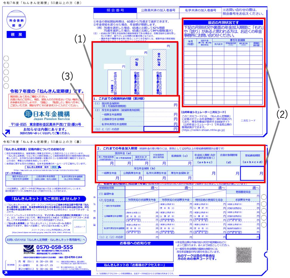 ねんきん定期便は、50歳未満と50歳以上では記載内容が若干異なります。