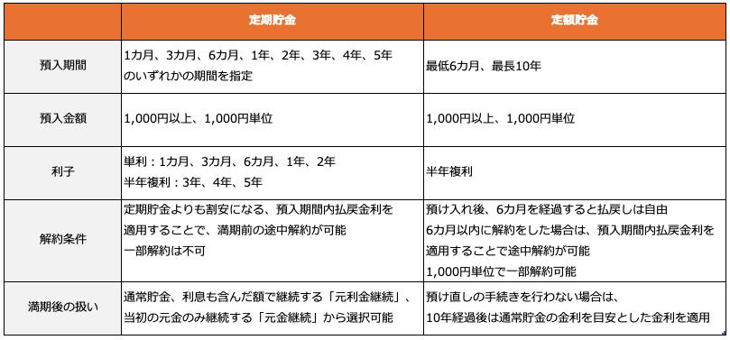 定期貯金と定額貯金の違いは、そのほかにも大きく3つあります。