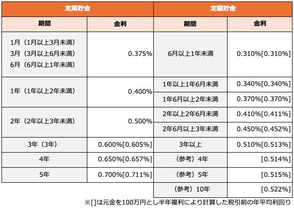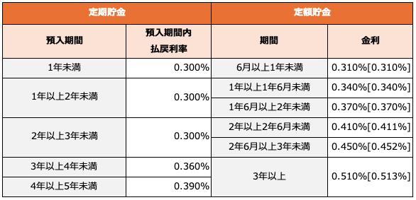 <定期貯金と定額貯金の金利比較表(2026年3月時点)>