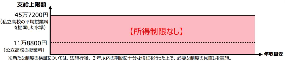 2026年からは、親の所得制限がなくなります。支給される年額は、高校が国公立か私立かで支給される上限額が以下のとおり異なります。