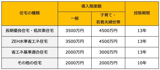 2026年入居の場合の借入限度額及び控除期間をまとめると、次のようになります。