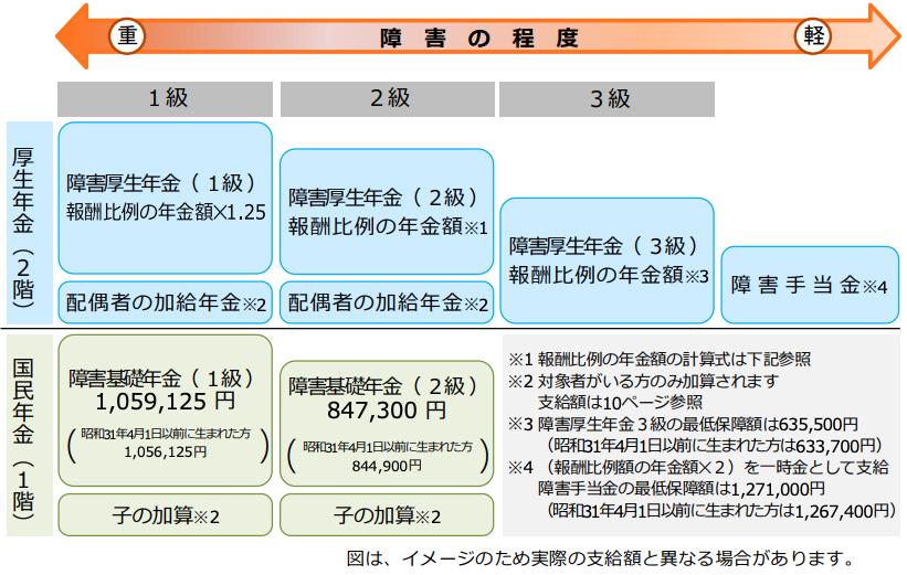 2026年度の場合、障害年金の金額は次の図のとおりです。