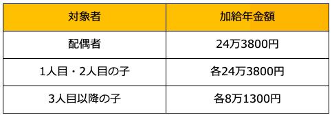 加給年金の条件に該当する場合、厚生年金に次の金額が上乗せされます。