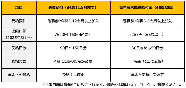 失業給付と高年齢求職者給付金の違い(2025年最新)