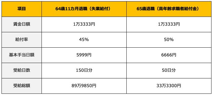 さらに、64歳11カ月で退職すれば、65歳到達後に求職申し込みをすることで年金との同時受給も可能になります。これが「64歳11カ月退職がお得」と言われる主な理由です。