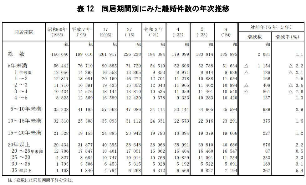 <同居期間別の離婚件数>