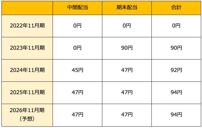 株主優待はAmazonなど日常でよく使うデジタルギフト3000円分が年2回。合計6000円分もらえる優待は魅力があります。